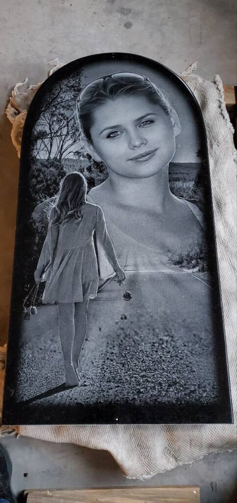 Ми наносимо зображення на камінь з фотографії, точно передаємо риси обличчя та деталі, створюючи довговічний і виразний портрет, що зберігає пам’ять на роки.